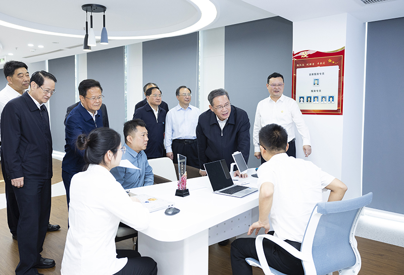 在钱塘区企业综合服务中心,李强听取浙江政务服务增值化改革情况,与前来办事的企业人员和中心工作人员交流,对浙江优化营商环境、促进民营经济发展等做法表示肯定。李强强调,要从企业需求出发,持续优化政务服务,调动社会资源,做好科创、金融等增值服务文章,主动推送政策,精准高效服务,不断提升企业和群众的获得感。