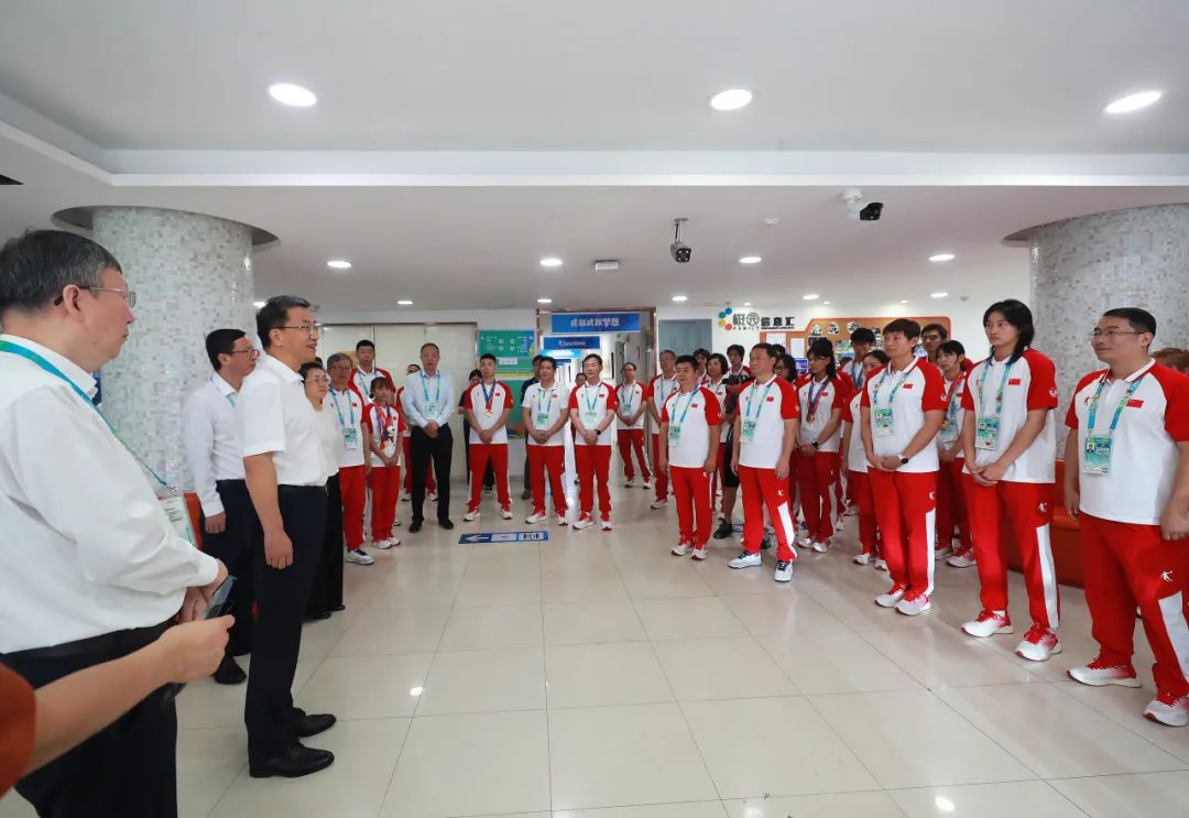 8月8日,教育部党组书记、部长、成都大运会组委会主席怀进鹏赴成都大运会大运村,慰问中国大学生体育代表团、大学生志愿者。教育部党组成员、副部长、成都大运会组委会副主席王嘉毅、陈杰,四川省副省长、成都大运会组委会副主席郑备参加慰问。