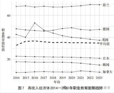 英国、加拿大等国,其“职普比”中等,在20%~40%区间内波动,体现了其在自由主义传统下,教育选择更多由市场和个人偏好驱动,职业教育在与高等教育的竞争中寻求动态平衡。