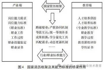 一方面,职业教育通过“职普融通”增强了体系内部的渗透性与灵活性;另一方面,则通过“产教融合”提升了体系与产业需求之间的对接性与适应性。而贯穿并支撑这一内外融通体系的制度性基石,正是国家资历框架。就产教融合来说,产教融合的核心是实现教育与产业、学校与企业的协同育人,其关键在于让人才培养标准与岗位能力要求精准对接。国家资历框架通过构建统一的资格认证与成果转换体系,为这一对接提供了制度化保障,成为推动产教融合深化的“桥梁”与“基石”。