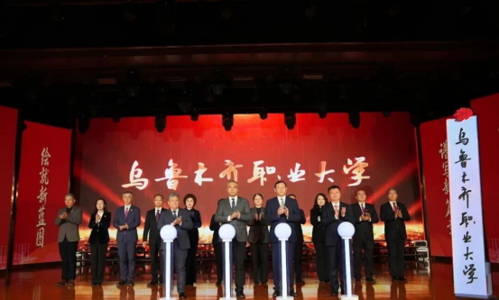 与会领导为“本科层次乌鲁木齐职业大学”揭牌,现场全体人员共同见证了这一历史性时刻。