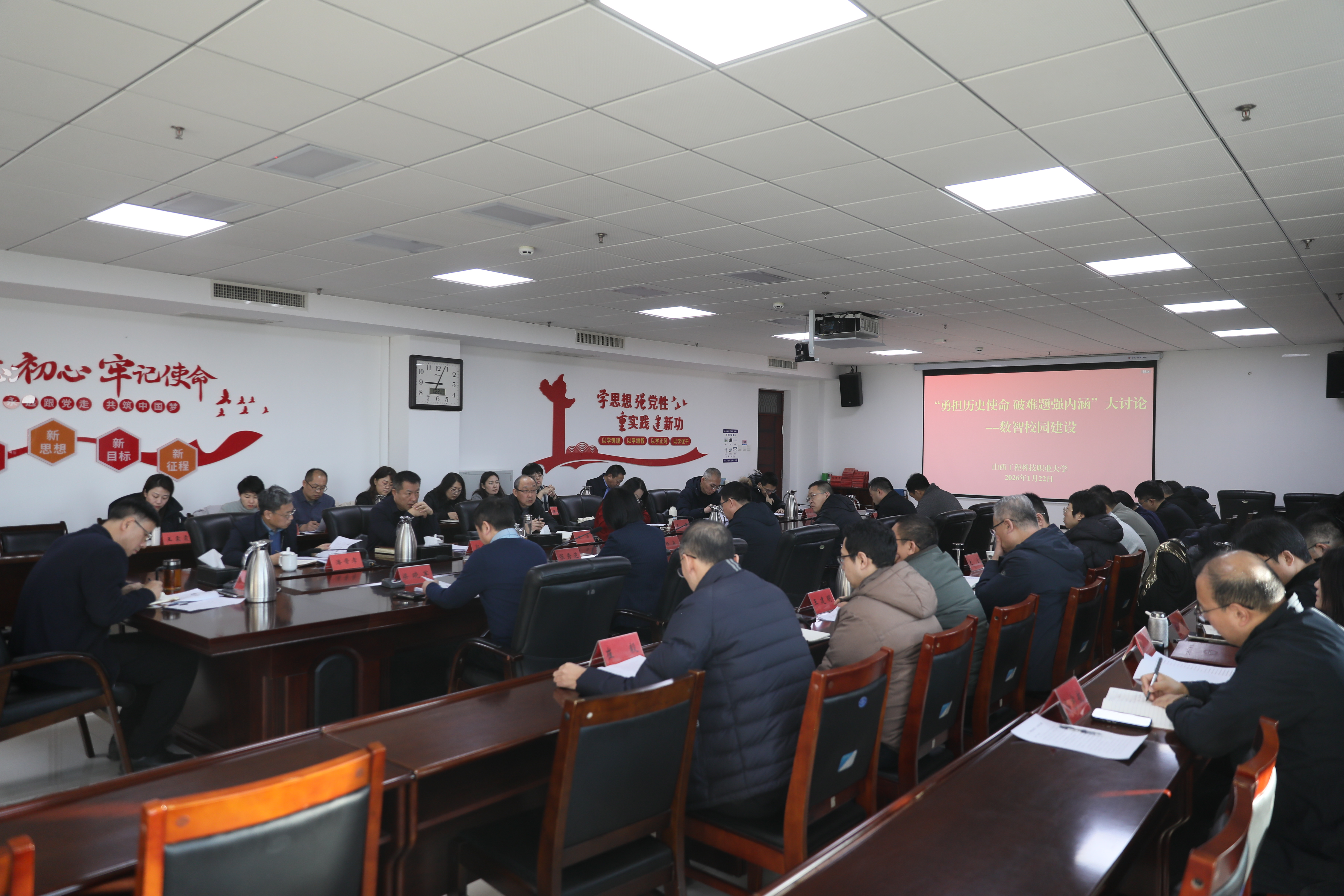 近日,山西工程科技职业大学围绕“勇担历史使命,破难题强内涵”主题,开展了五场专题大讨论。全校上下聚焦学校治理与干部队伍建设、高水平师资队伍建设、教学管理与教学改革、数智校园建设、办学资源优化配置五大专题,集众智、汇众力,找问题、谋对策、定方向,为学校发展凝聚思想共识、夯实行动基础。