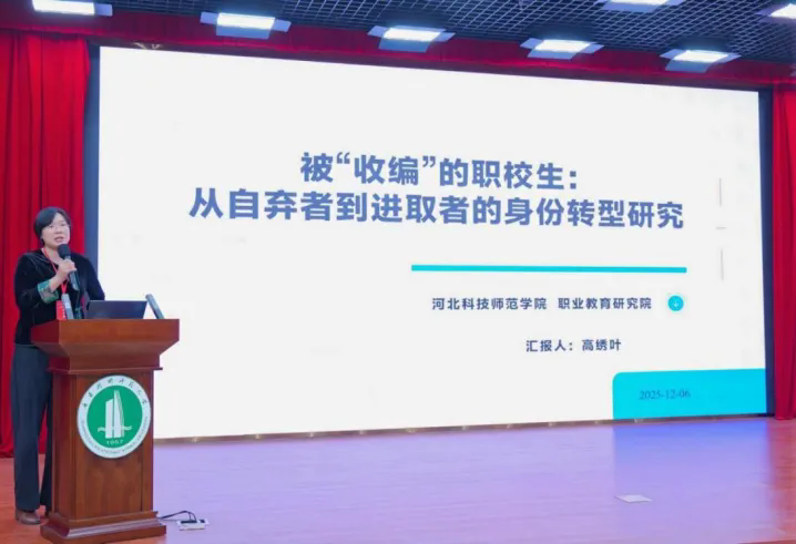 河北科技师范学院副研究员高绣叶报告了《被“收编”的职校生:从自弃者到进取者的身份转型研究》。
