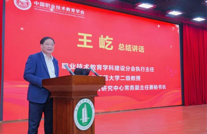 职业技术教育学科建设分会执行主任、南宁师范大学二级教授、中国—东盟职业教育研究中心常务副主任兼秘书长王屹作会议总结。他指出,学科迈向更高层次、更深结构需要研究者的创新。未来研究需在学科评议、制度建构等关键场域积极争取,同时要以数字化和人工智能为牵引,重塑人才培养、课程形态、技能标准与治理体系。