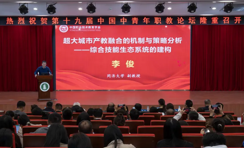 同济大学副教授李俊作了题为《超大城市产教融合的机制与策略分析——综合技能生态系统的建构》的报告。他从生态系统理论出发,分析了北京、上海、广州等超大城市在产教融合中面临的独特挑战与机遇,提出了构建政府、行业、企业、院校多元协同、资源互通的“综合技能生态系统”的实现路径与策略建议。