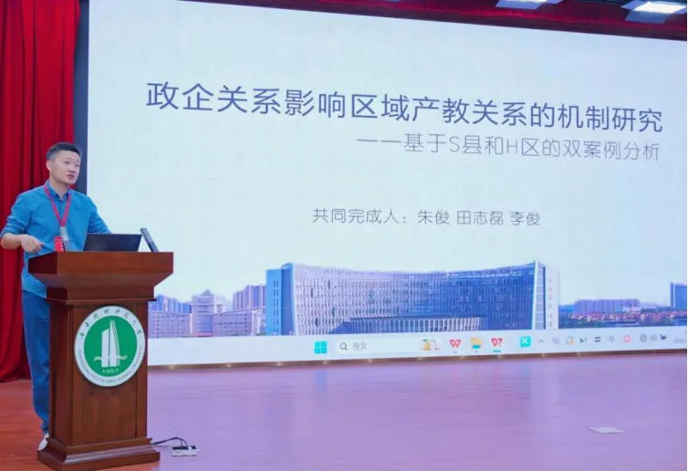 江苏理工学院讲师朱俊作了《政企关系影响区域产教关系的机制研究——基于S县和H区的双案例分析》的报告。