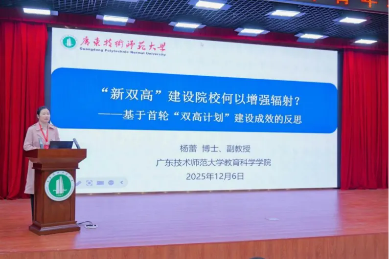 广东技术师范大学教育科学学院副教授杨蕾作了《“新双高”院校何以增强辐射?——基于首轮“双高计划”建设成效的反思》的报告。