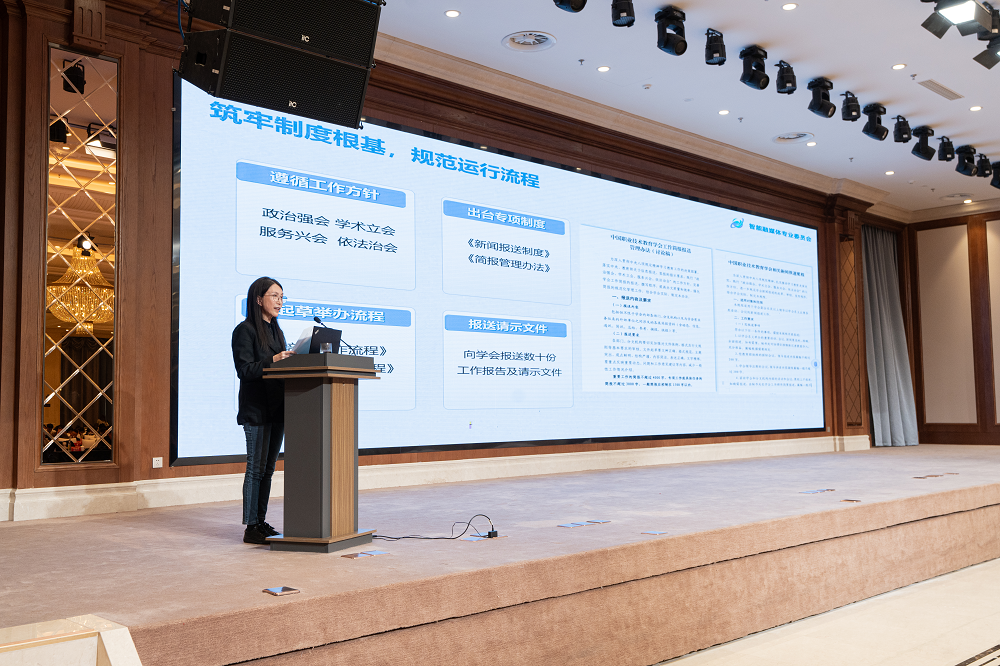 下午,东营职业学院校长解涛主持了学术年会,受专委会主任委托,学会副会长、智能融媒体专委会执行主任赵爱芹作智能融媒体专业委员会2025年度工作报告,对2025年度专委会工作进行全面总结,并对2026年6项重点工作作出安排部署。